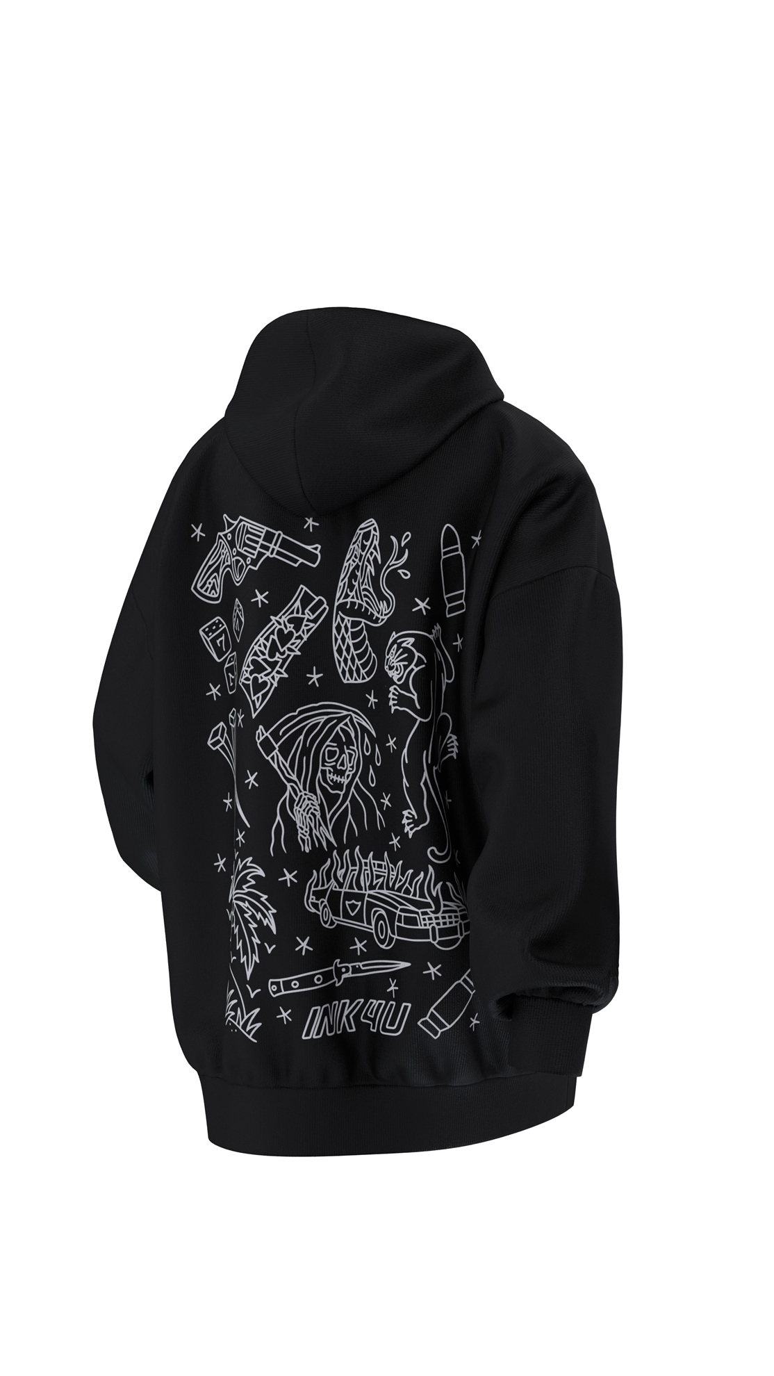 Wygodna bluza unisex z nadrukiem oldschool tattoo – idealna dla Ludzi z pasją! Enzymowana bawełna premium 320g, luźny krój, kaptur i kieszeń kangurka. Wyróżnij się oryginalnym designem! Wyprodukowane w 100% Polska. Projekt artysty @szoszek1